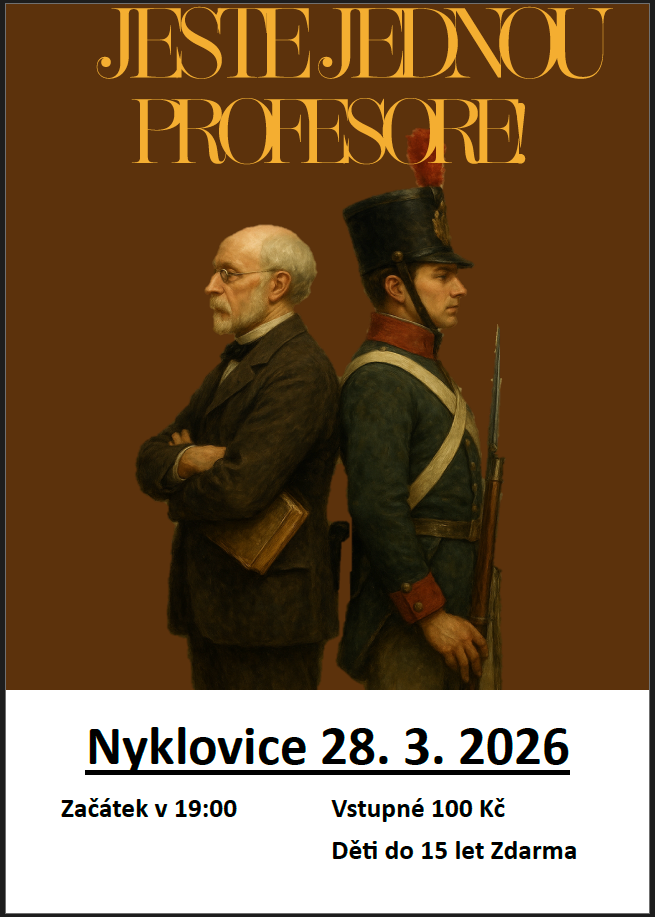 Opět po roce v sobotu 28. 3. 2026 k nám zavítá Ochotnický divadelní soubor Vířina se svým představením Ještě jednou PROFESORE. Začátek v 19:00